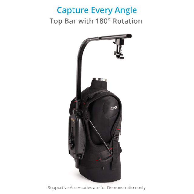 A hám leveszi a súlyt a karjáról és a válláról, így hosszabb ideig fáradtság nélkül tarthatja stabilan a fényképezőgépet, ami egyenletesebb, stabilabb felvételeket eredményez. A 180°-ban elforgatható felső rúd megkönnyíti a kamera különböző szögekben történő mozgatását. A támasztókötél egy további érintkezési pontot is biztosít a rezgések csökkentése érdekében.