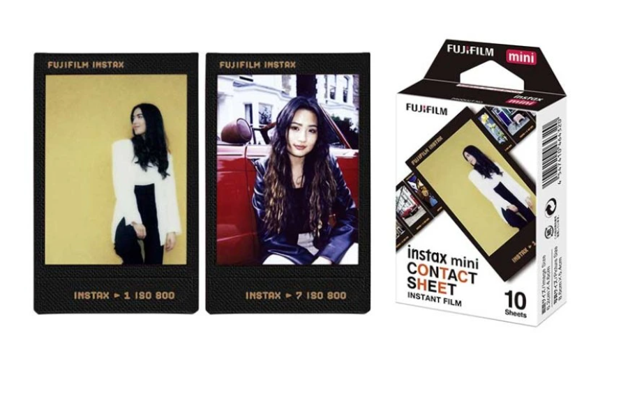 A Fujifilm instax mini azonnali film stílusos fekete szegéllyel, élénk, hitelkártya