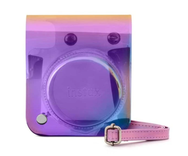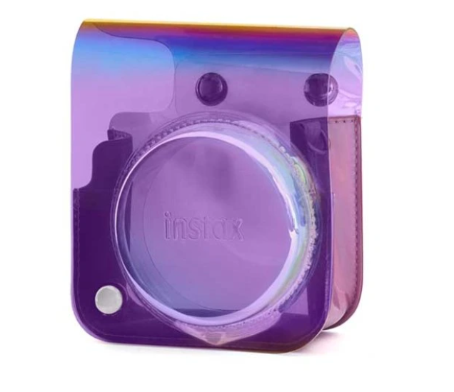 A Fujifilm Instax Mini 12 Iridescent Case egy stílusos, szivárvány színekkel díszített védőtok, amelyet az Instax Mini 12 fényképezőgéphez terveztek. Megvédi a fényképezőgépet a karcolásoktól, ütésektől és a portól, miközben kényelmes hozzáférést biztosít az összes vezérlőelemhez.