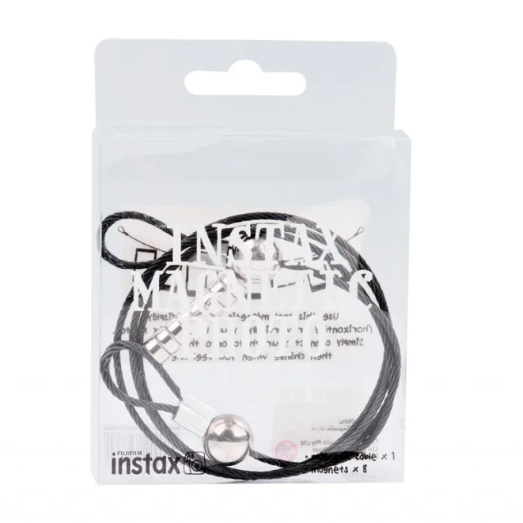 A Fujifilm INSTAX mágneses fotókábel egy stílusos és praktikus kiegészítő kedvenc fotóid bemutatásához. Erős mágnesek segítségével ez a 800 mm-es függesztőkábel lehetővé teszi több fotó bemutatását bármilyen formátumban, így tökéletes otthoni, irodai vagy kreatív terekbe.