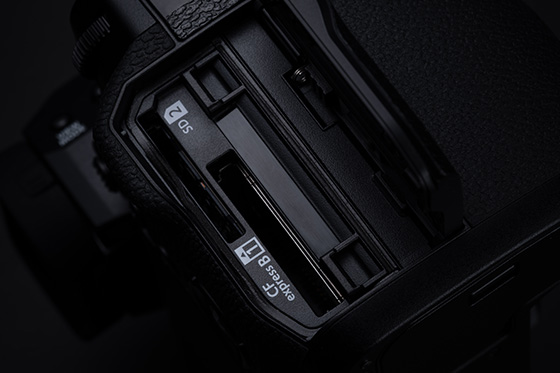 Az X-H2S egy CFexpress™ Type B memóriakártya- és egy UHS-II SD memóriakártya-nyílással rendelkezik. CFexpress™ Type B típusú memóriakártyák segítségével aknázza ki az X-H2S hihetetlenül gyors sorozatfelvételi módjának és professzionális videóteljesítményének teljes potenciálját.
