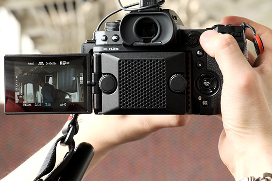 Csatlakoztassa az opcionális hűtőventilátort (FAN-001) az X-H2S-hez, hogy magas hőmérsékleten is kiterjeszthesse a videofelvételi képességeket.