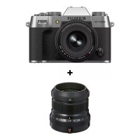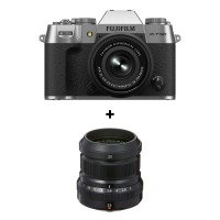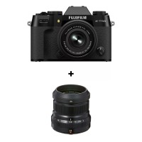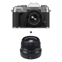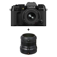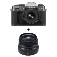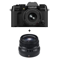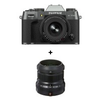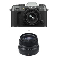 A Fujifilm X-T50 Black egy könnyű, tükör nélküli APS-C fényképezőgép, amelyet a távolságmérő ihletett (123,8 × 84 × 48,8 mm, 438 g akkumulátorral/SD-kártyával), amely 23,5 × 15,6 mm méretű, 40,2 MP felbontású X-Trans CMOS 5 HR érzékelővel és X-Processor 5 processzorral rendelkezik, amely 14 bites RAW formátumú képek készítését teszi lehetővé 7728 × 5152 felbontással, natív ISO 125–12 800 (ext. 64–51 200) felbontással és ultranagy sebességű elektronikus zársebességgel, akár 1/180 000 s, a pontos expozícióvezérlés érdekében. A videofunkciók között szerepel a 6,2K/30p open-gate 3:2 (200 Mb/s, 10 bites H.265), 4K/60p és FHD/240p lassított felvételek teljes szenzormegjelenítéssel, digitális IS + IS Boost támogatással a kézi tartás stabilitása érdekében. A 425 pontos hibrid fázis/kontrasztos AF rendszer -7 EV-ig működik, mélytanuló AI objektumfelismeréssel (emberek, állatok, madarak, járművek, repülőgépek, rovarok, drónok) és követéssel. A felső panelen található speciális forgatható film szimulációs választó gomb azonnali hozzáférést biztosít 20 módhoz, beleértve a REALA ACE és a Nostalgic Neg. módokat, három saját hellyel; az AUTO mód automatikusan kiválasztja a beállításokat az objektumfelismerés segítségével. Az 5 tengelyes IBIS akár 7 fokos kompenzációt kínál (CIPA, dőlés/eltérés XF35mm f/1,4-gyel), míg a 0,39" 2,36 millió pontos OLED EVF (0,62× nagyítás, 100 fps) és a 3" 1,84 millió pontos, vari-angle érintőképernyő (érintéses AF/vezérlés) megkönnyíti a kreatív szögek használatát. A csatlakozási lehetőségek között szerepel a 10 Gbps USB-C (töltés/adatátvitel), micro-HDMI (12 bites RAW kimenet), Wi-Fi 4, Bluetooth 5.2 és 2,5 mm-es mikrofon/távirányító csatlakozó; a tárolást két UHS-II SD-kártyahely biztosítja. A beépített vaku (GN 5) és a TTL hot shoe támogatja a külső megvilágítást. Az NP-W126S akkumulátor ~305 képet biztosít (CIPA LCD). Az XF 23 mm f/2,0 R WR objektívvel kombinálva univerzális készletet alkot utcai fotózáshoz, tartós, gyors optikával.