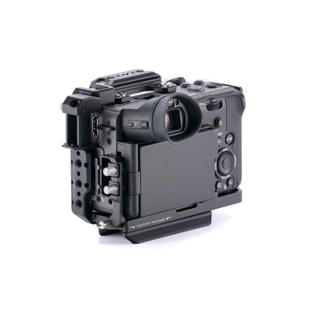 A keret kialakítása teljes mértékben kompatibilis a Sony FX2 modell összes kulcsfontosságú funkciójával. Lehetővé teszi az összes port közvetlen elérését, beleértve a HDMI, USB-C, XLR bemeneteket és az elektronikus keresőt (EVF) is, anélkül, hogy le kellene szerelni a keretet. A keret így kényelmes kezelhetőséget biztosít még igényes filmforgatások során is.