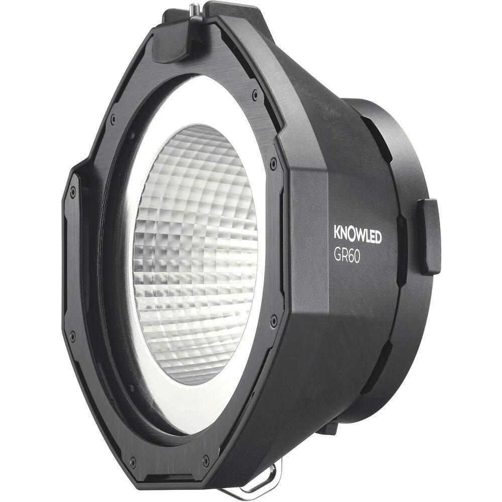 A Godox Knowled GR60 60° reflektor úgy lett kialakítva, hogy javítsa az MG1200BI, MG2400BI, MG1200R és MG2400R világítási rendszerek teljesítményét, precíz sugárformázást biztosítva minimális szórással. Széles, 60°-os fényterjedése ideális nagy díszletek, építészeti terek vagy csoportos témák egyenletes megvilágításához, miközben megőrzi az irányt és a tisztaságot. A GR60 erősen fényvisszaverő ezüst belső felülettel rendelkezik, amely biztosítja a hatékony fénykibocsátást és a természetes fénycsökkenést. A robusztus csavaros rögzítés gyors és biztonságos rögzítést biztosít a kompatibilis szerelvényekhez, így megbízható eszköz professzionális film-, televíziós és kereskedelmi produkciókhoz. A reflektor kizárólag sugárformáló kiegészítőként lett tervezve, ezért nem támogatja a rácsos szerelvényeket, így egyszerű, de hatékony fényvezérlési megoldást biztosít.