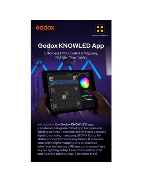 | Light control | DMX-512 + RDM, LumenRadio CRMX, Bluetooth (Godox Light app), 2.4 GHz remote, on-unit control |