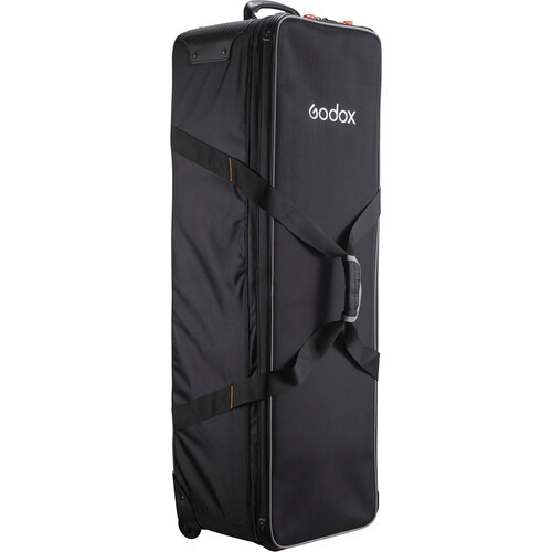 A Godox CB-01 kerekes lámpaállvány és állványhordtáska egy tartós, vízálló megoldás 44,9 hüvelyk hosszú állványok és tripodok tárolására és szállítására. Nylon szerkezetével, beépített kerekekkel, kettős felső pántfogantyúkkal, felső hordozófogantyúval és védő sarokvédőkkel kényelmes mobilitást és maximális felszerelésvédelmet biztosít.