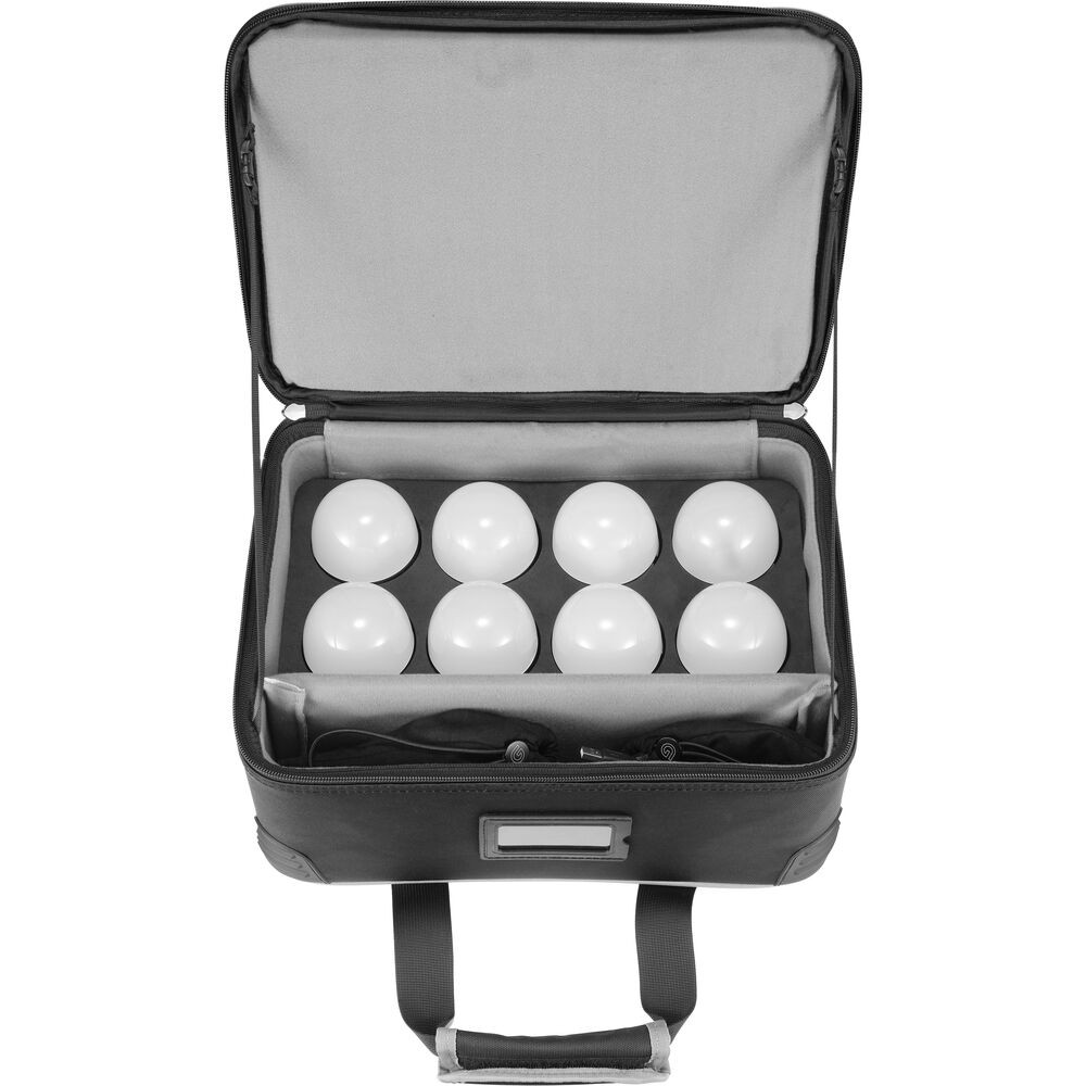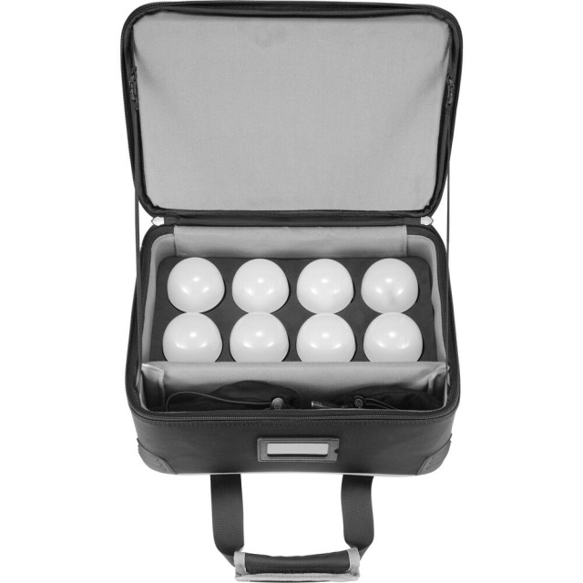 A mellékelt töltő- és hordtáska mind a nyolc izzót rendezett és védett állapotban tartja, míg a nyolc kerek kupakos diffúzor segít lágyítani és formálni a fénykibocsátást. E26/E27-es alappal a C10R izzók szabványos foglalatokba illeszkednek, így sokoldalú világítási eszközzé válnak praktikus célokra, kellékekhez és kreatív világítási tervekhez.