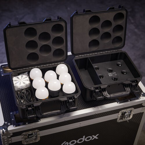 Godox Knowled nyolc lámpás töltőtok-készlet C7R-K8 C7R lámpákhoz. Hatékonyan tárolhat és tölthet akár nyolc C7R LED videólámpát egy tartós tokban. Tökéletes megoldás mobil filmesek és stúdiószakemberek számára, akiknek szervezett és azonnal használható világítási megoldásokra van szükségük. Egyszerűsítse munkafolyamatát ezzel a kényelmes készlettel.