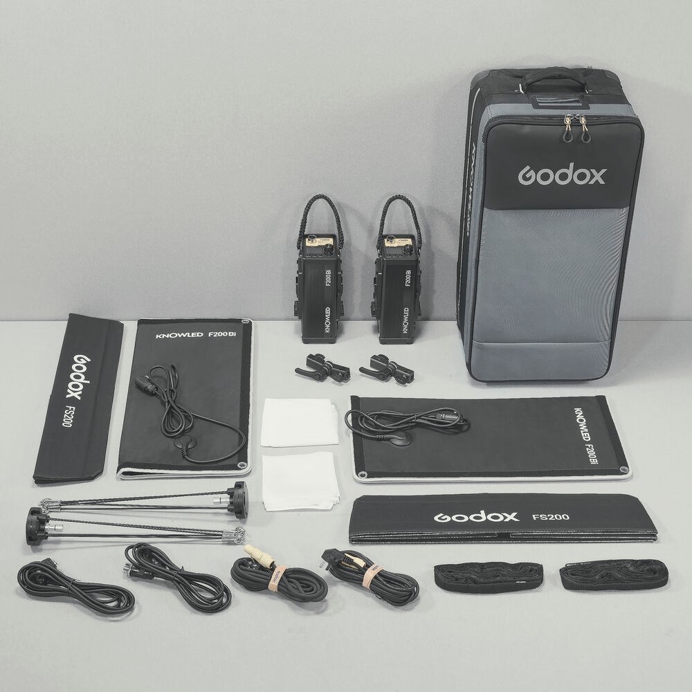 Az F200Bi K2 készlet tartalmaz softboxokat és eltávolítható rácsokat a finom fényformáláshoz, X-konzolokat és adaptertartókat a biztonságos rögzítéshez, vezérlő/tápegységeket, csatlakozó- és tápkábeleket, valamint egy párnázott hordtáskát az egyszerű utazáshoz. Prémium kivitelű, pontos teljesítményű és páratlan alkalmazkodóképességű Godox KNOWLED F200Bi K2 készlet egy csúcsminőségű világítási rendszer azoknak a szakembereknek, akiknek strapabíró, rugalmas, nagy teljesítményű LED-megoldásra van szükségük.