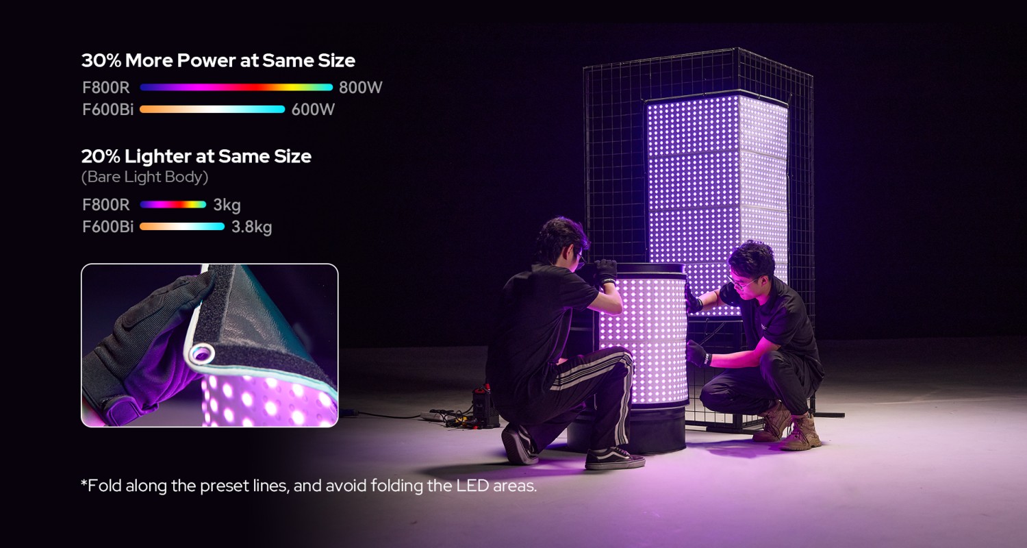 A valós produkciós környezetekhez tervezett F100R IP54 időjárásállósággal rendelkezik, amely megvédi mind a fénymatot, mind a vezérlőt a portól és a vízcseppektől, így stúdióban és kültéri helyszíni felvételekhez egyaránt alkalmas. Az újonnan frissített fém X-konzol javítja a tartósságot, miközben megkönnyíti a telepítést szűk helyeken.