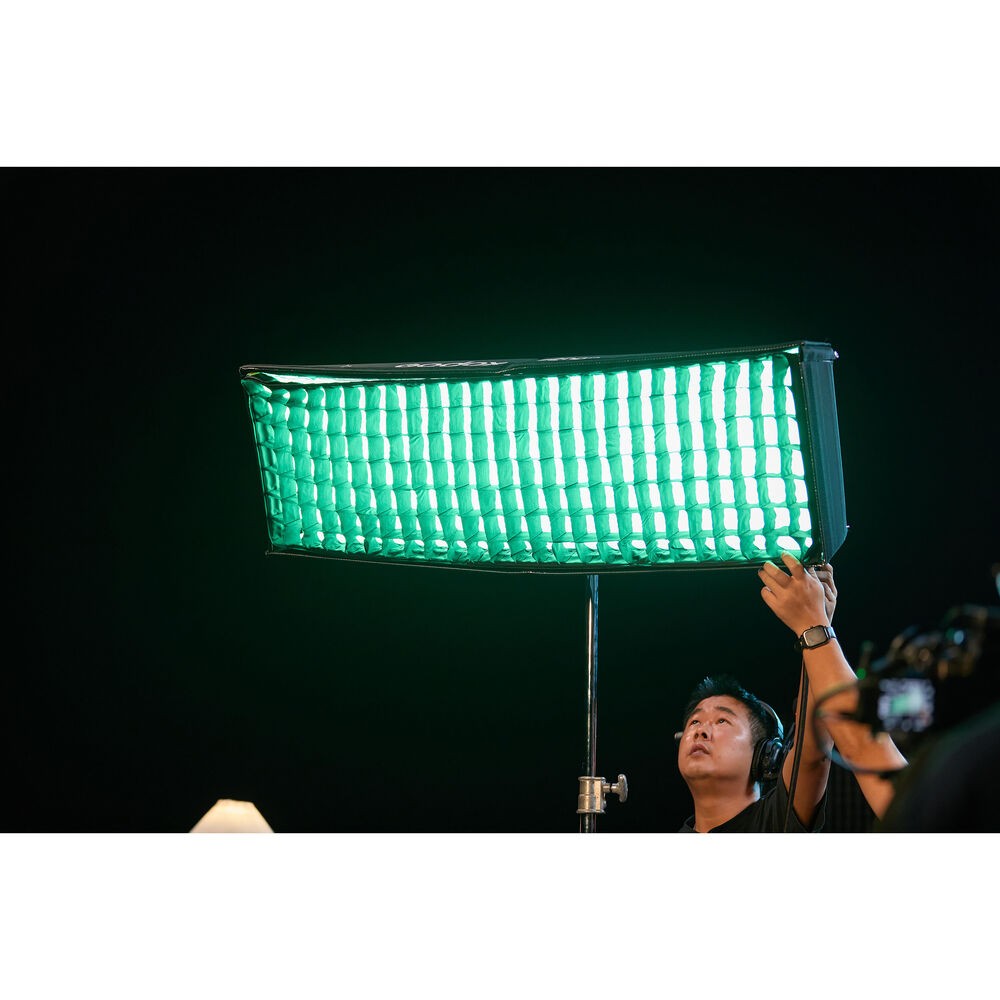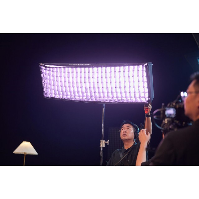 A készlet tartalmaz egy softboxot a fény szórásához, forgatható tartót, vezérlőt, csatlakozó kábelt, tápkábelt, adaptertartót és hordtáskát, így készen használható, rugalmas világítási megoldást kínál a legkülönbözőbb produkciós igényekhez.