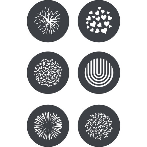 Tegye még jobbá Godox MG1200Bi reflektorát a GP-GS2 Gobo szettel, amely hat acél gobót tartalmaz, amelyek kreatív mintákat vetítenek, például tűzijátékot, napfényt, szíveket és még sok mást – tökéletes színházi, filmes, divat- és díszleti effektusokhoz.