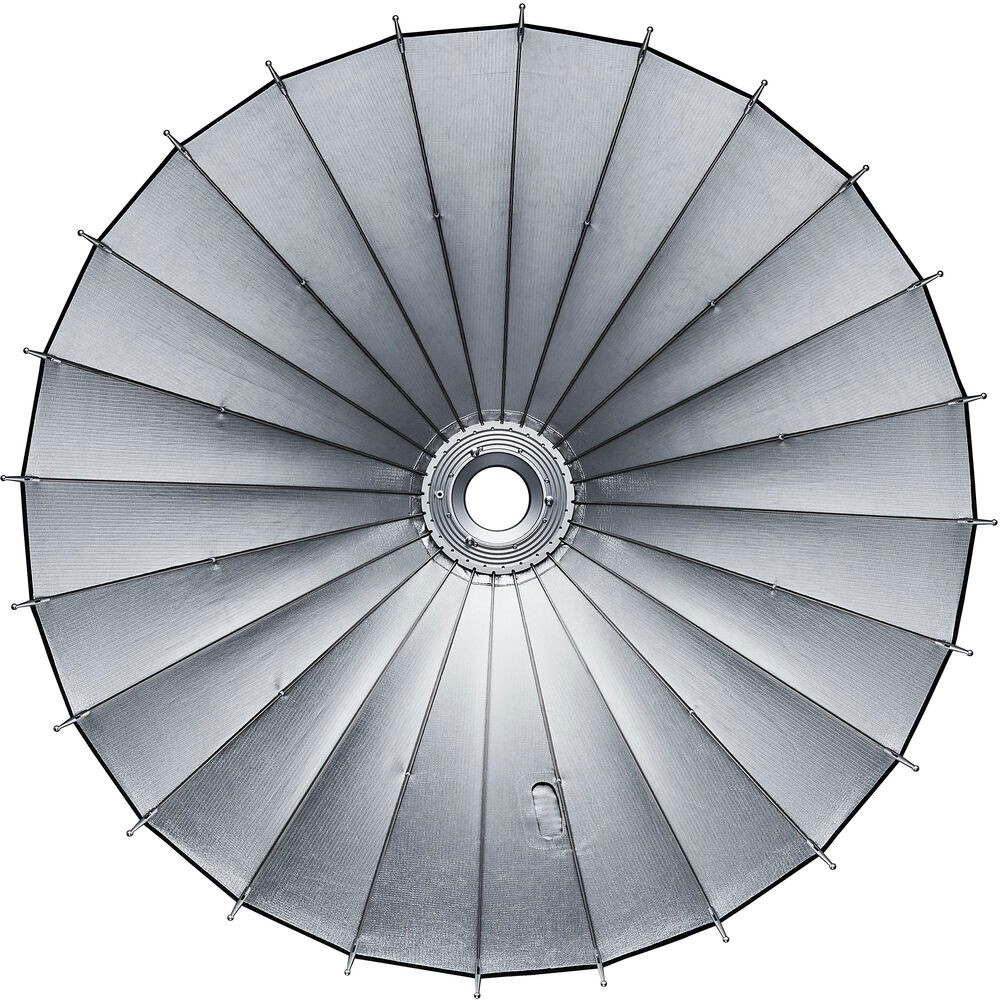 47,2" (120 cm) ezüst belső reflektora maximális fényhatékonyságot és éles kiemeléseket biztosít, míg a fekete külső megakadályozza a nem kívánt fény szivárgását. A PF-M fókuszáló tartó és a PF-R870 fókuszáló rúd lehetővé teszi a fényforrás pozíciójának finomhangolását a reflektoron belül, így teljes ellenőrzést biztosít a fény lágyasága és intenzitása felett.