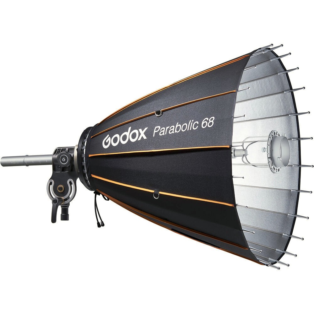A Godox Parabolic 68 Reflector Kit (P68kit) egy professzionális világítási megoldás, amelyet divat- és portréfotózáshoz terveztek. A 27,6 hüvelykes parabolikus reflektorral és erősen fényvisszaverő ezüst belső felülettel ellátott készlet tiszta, tükröződő fényeket biztosít, miközben széles, körbeölelő fényt hoz létre. Fókuszáló tartóval, rudakkal, stroboszkóp adapterrel, markolat készlettel és hordtáskával kiegészítve precíziót, sokoldalúságot és hordozhatóságot kínál a fotósoknak.