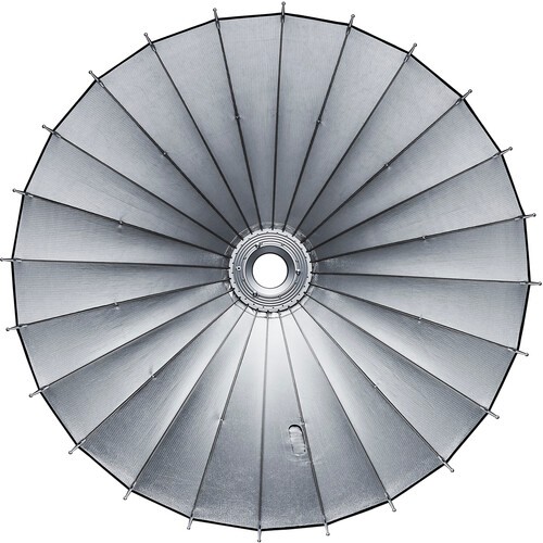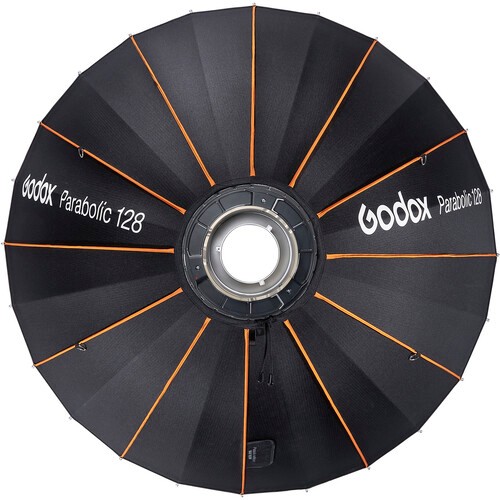 A Godox Parabolic 128 reflektor professzionális világítási megoldás, amely ideális divat- és portréfotózáshoz. 47,2 hüvelykes parabolikus kialakítása és ezüst belső felülete tiszta, tükröződő fényeket és széles, előnyös fényt biztosít, amely simán körülveszi a témát.