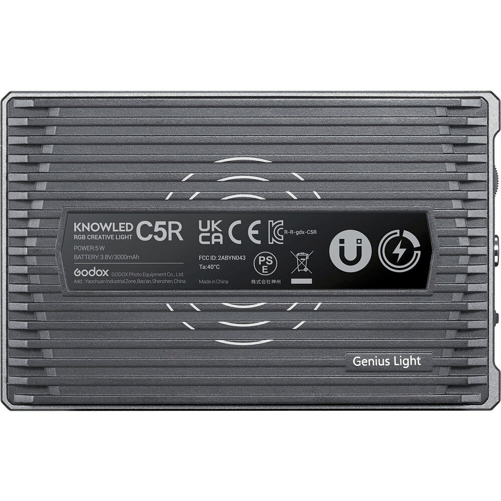 A Godox Knowled RGBWW LED Light C5R egy erőteljes, ultrakompakt világítási megoldás, amelyet fotósok, videósok és tartalomkészítők számára terveztek. A C5R széles szín hőmérséklet tartománnyal (2500–8500 K) és 0–100%-os fényerő-szabályozással rendelkezik, így biztosítja a világítási környezet pontos vezérlését. Beépített LCD-paneljén megjelenik a mód, a színhőmérséklet, az akkumulátor állapota és a csatlakozási lehetőségek, míg két független gomb segítségével intuitív módon állítható a fényerő és a módok, beleértve a CCT, HSI, FX és 39 kreatív effektust, például tűzijátékot vagy rendőrautó villogó fényeit.