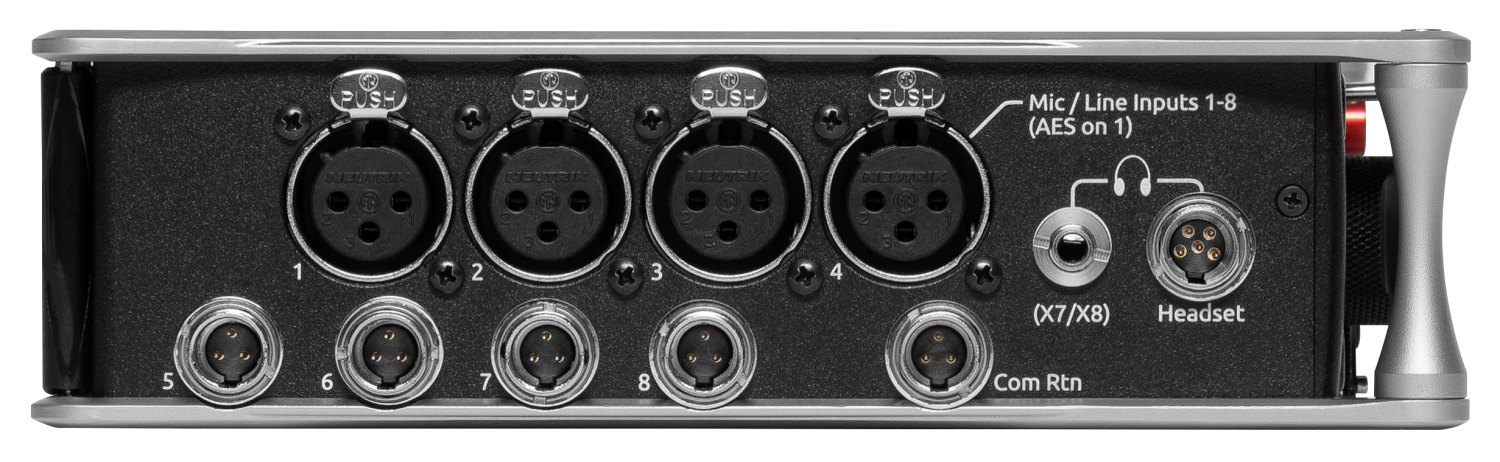 Hordozható keverő-felvevő 8 mikrofon/line bemenettel, 16 csatornával, 10 busz, 20 sáv, 16 csatornás Dante I/O, 256 GB belső SSD, 2 SD-kártyahely, USB vezérlőfelület támogatás MCU-n keresztül