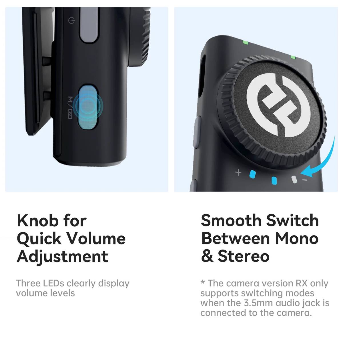 A LARK M2 készlet egy mindössze 9 gramm súlyú vezeték nélküli hajtókamrás mikrofont tartalmaz filmkészítők, vloggerek és podcasterek számára. Elég kicsi és könnyű ahhoz, hogy kényelmesen, biztonságosan és feltűnésmentesen rögzíthető legyen bármilyen öltözékhez.
