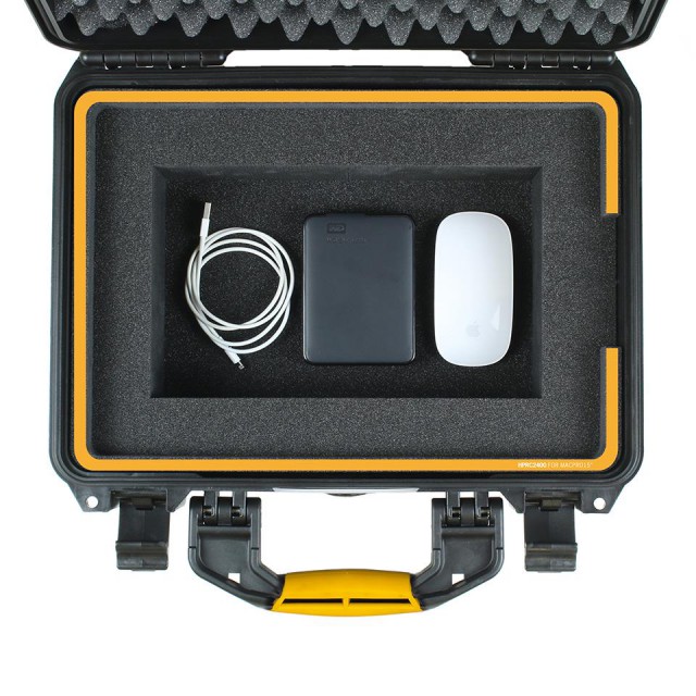 A HPRC 2400 for MacBook Pro 15" egy könnyű, ütésálló és vízálló tok, amelyet kifejezetten a MacBook Pro 15" laptop és tartozékai szállítására és védelmére terveztek