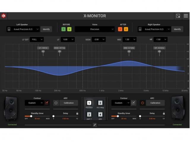Az X-MONITOR technológia másik erőssége a legendás stúdiómonitorok, valamint a népszerű hifi hangszórók és mobil eszközök frekvencia- és fázisválaszának emulálása. Több mint 20 profil áll rendelkezésre, és idővel továbbiakkal is bővülni fog. Ezzel pénzt és stúdióhelyet takaríthat meg. Egyetlen pár iLoud Precisions az X-MONITOR technológiával lehetővé teszi, hogy gyorsan tesztelje a keverést különböző referenciarendszereken anélkül, hogy elhagyná a "sweet spotot" vagy további monitorok tulajdonosa lenne.