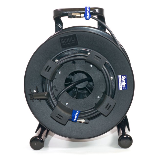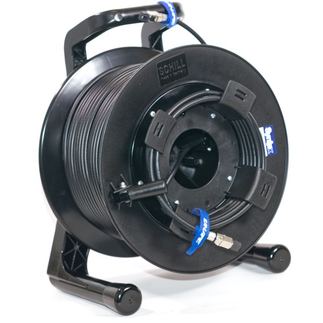 Rugalmas CAT6A STP kábel 23AWG, külső átmérője 8,6 mm, Telegartner RJ45 csatlakozókkal, Schill GT 310.RM kábeldobra szerelve. Az Ethernet kábeleket nemcsak számítógépes hálózatokhoz, hanem újabban digitális hanghálózatokhoz, hálózati kamerákhoz, HDBaseT átvitelhez is használják. A teljes kábelhossz a csatlakozókkal együtt van megadva.