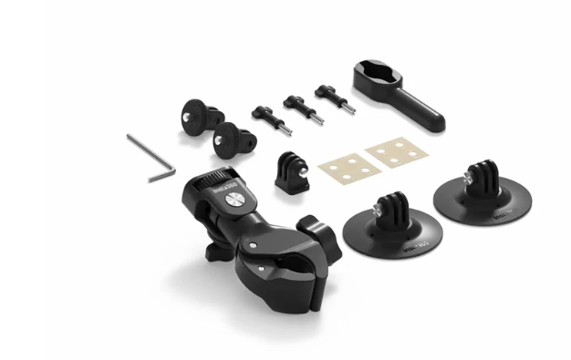 Az Insta360 INST110-33 Motorcycle Package V2 egy komplett kameratartó készlet, amelyet motorosok számára terveztek. Többféle rögzítési lehetőséget kínál a kormányra és a sisakra, valamint a szükséges adaptereket és szerszámokat is tartalmazza, így biztonságosan rögzítheti Insta360 kameráját, és magabiztosan készíthet dinamikus felvételeket motorozás közben.