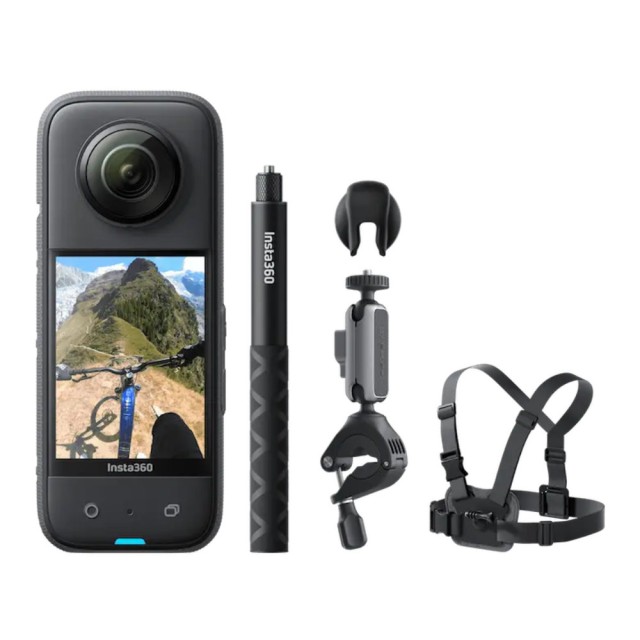 A kerékpáros készlet tartalmaz 1x Insta360 X3, 1x 114cm-es láthatatlan szelfibotot, 1x kerékpáros csomagot és 1x objektívsapkát.