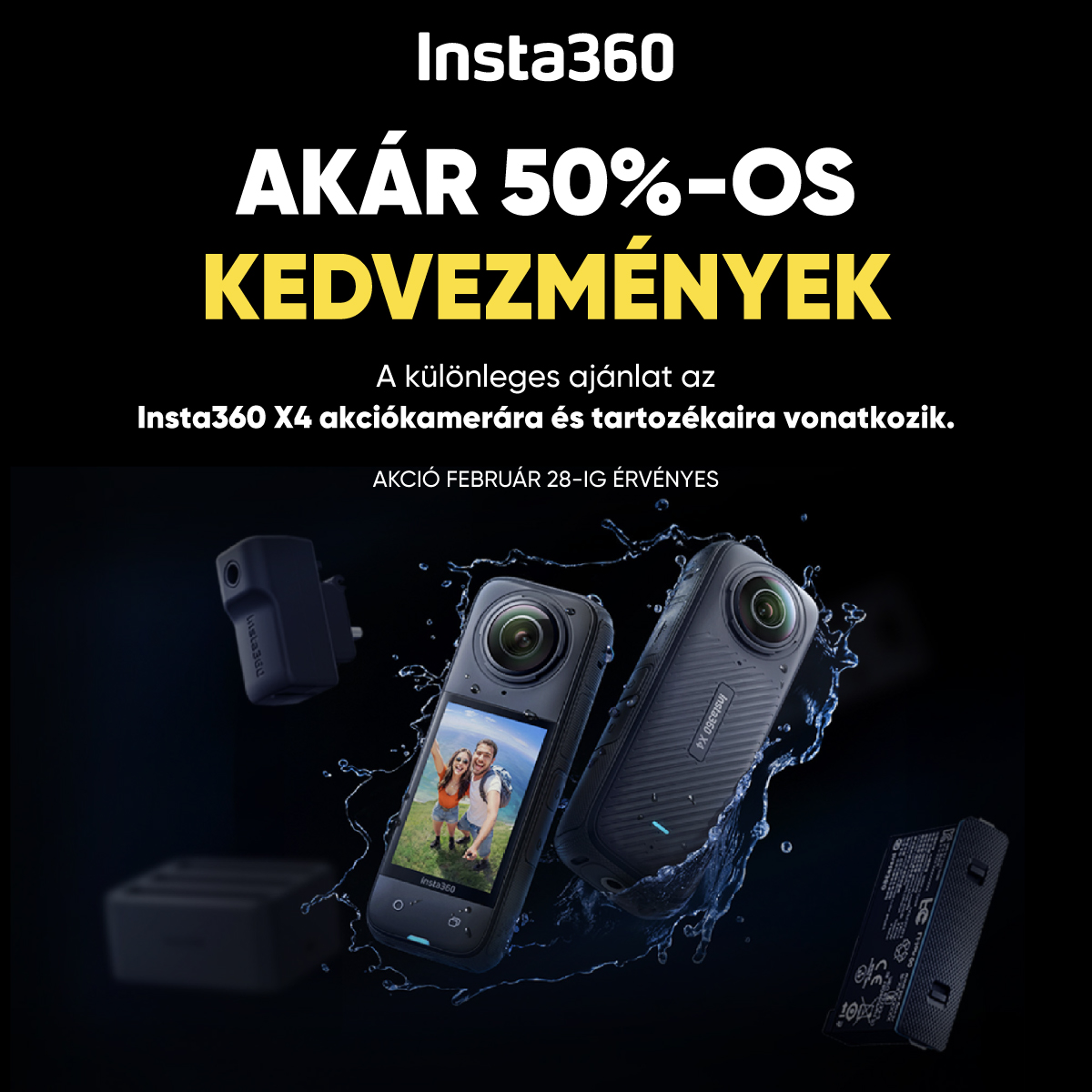 Kalandkedvelők és minőségi videók szerelmesei, figyelem! 🎥2026. február 2. és 28. között különlegespromóciózajlikaz Insta360 X4 kamerára és kiválasztott kiegészítőkre.
