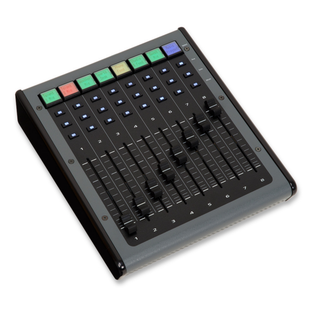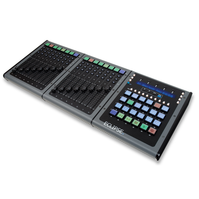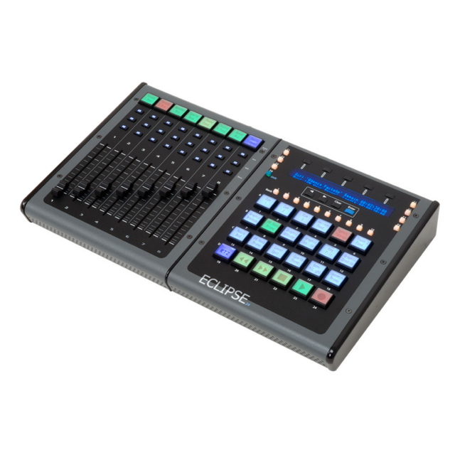 A fekete Eclipse MXL Midnight 8-csatornás fader bővítő LCD gombokkal a JLCooper-től egy professzionális fader vezérlő, amely 8 kiváló minőségű, érintésérzékeny, 100 mm-es motoros faderrel, 8 nagy felbontású, háttérvilágítású LCD kijelzős gombbal és 24 megvilágított nyomógombbal rendelkezik. Megjeleníti a csatornák címkéit, a sáv élesítésének színkódolt állapotát és egyéb kritikus információkat. Önálló vezérlő számítógépes alkalmazással való használatra.
