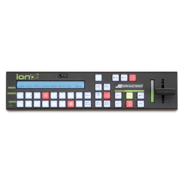 Az ion Broadcast Switcher Panel a JLCooper-től egy hardveres vezérlőpanel a Blackmagic Design ATEM kapcsolókkal történő gyors videováltáshoz élő produkciós környezetben. Kompatibilis az ATEM szoftverrel, és laptop vagy asztali számítógép segítségével használható. A kapcsolópanelt önálló egységként is használhatja az ATEM elsődleges vagy másodlagos vezérlőként. Az ion rackfülekkel (külön megvásárolható) rackbe szerelhető.