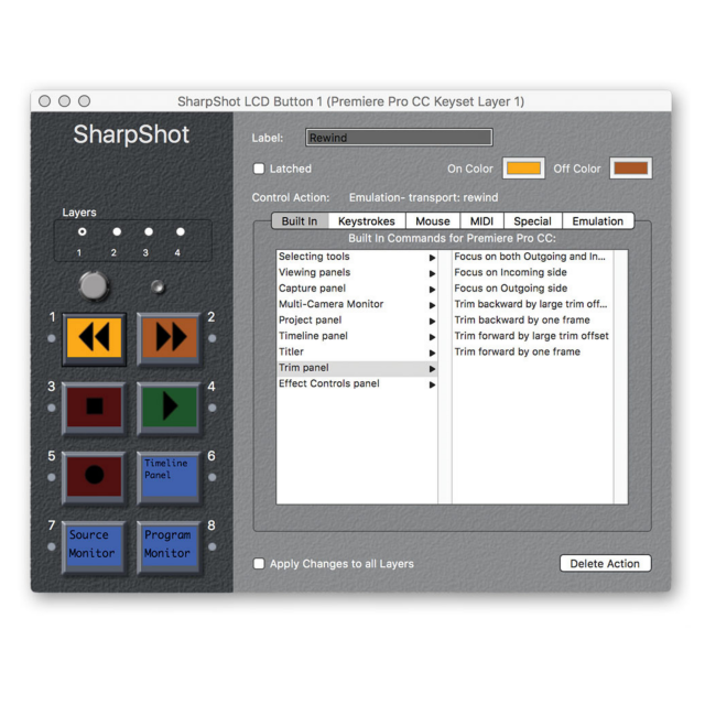 Az RGB háttérvilágítással ellátott grafikus LCD kijelzőt integráló SharpShot Command Palette akár 64 színt is képes megjeleníteni, és szoftveres vezérlőkkel rendelkezik a kezelőfelület, a kijelző és a háttérvilágítás számára. Az azonnali hang- vagy videolejátszást és vezérlést kínáló vezérlő alkalmas a műsorszórás automatizálásához, utómunkákhoz és más speciális alkalmazásokhoz. A vezérlő a változó működési körülményekre is figyelmeztet bármely 8 különböző szín megjelenítésével. A testreszabott felhasználói felülettel a SharpShot rugalmas vezérlést és gyors működést kínál, miközben csökkenti az emberi hibák számát.