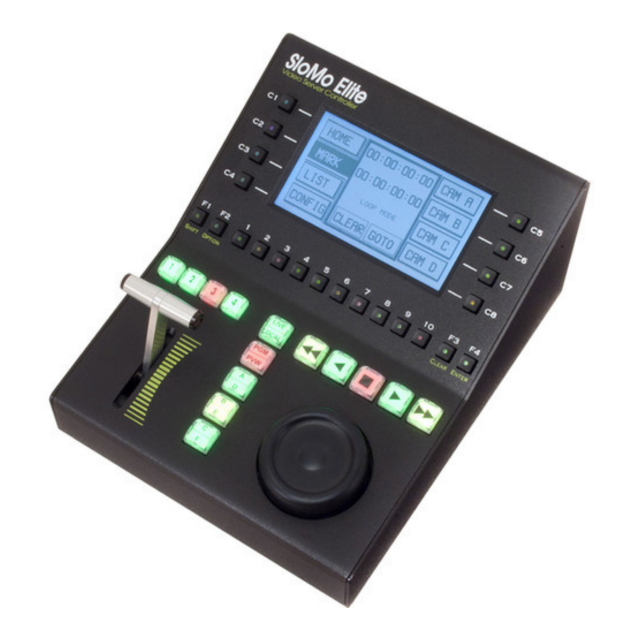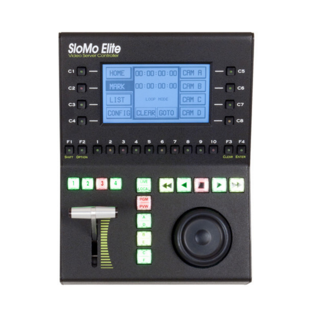 A JLCooper SloMo Elite-C vezérlője egy Ethernet és USB 2.0 interfésszel rendelkező videoszerver-vezérlő. Ez a kompakt változat 33%-kal kisebb, mint a SloMo Elite vezérlőfelület, és a szoftver- és OEM-fejlesztők számára készült. A SloMo Elite-C vezérlőt olyan lassított mozgású alkalmazásokhoz tervezték, mint a sport, a közvetítés, az eredményjelző és az azonnali visszajátszás. 10 bites Hall-effektes T-Barral, elektromágneses görgetőkerékkel és 4,5 x 2,5" méretű, háttérvilágítással ellátott grafikus kijelzővel rendelkezik. Egyidejűleg akár négy videoszerver vagy meghajtó is vezérelhető.