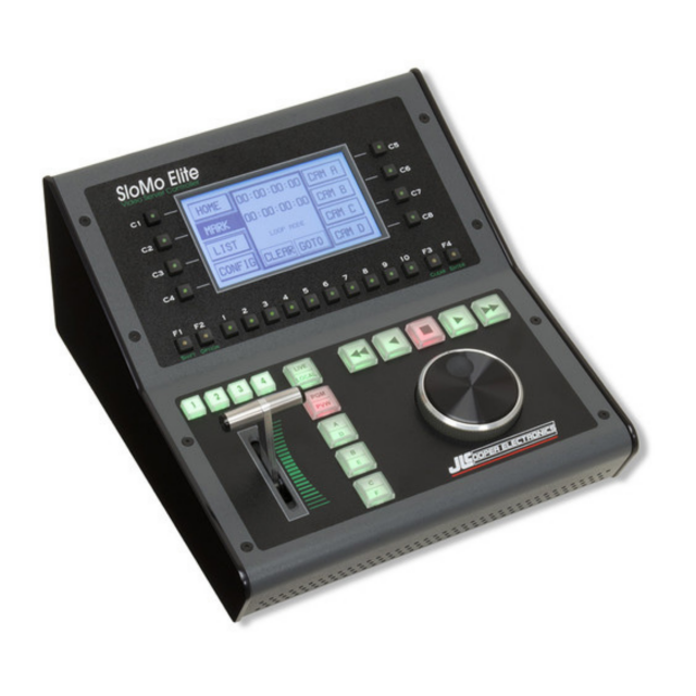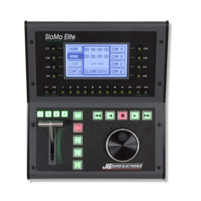 A JLCooper SloMo Elite-C vezérlője egy Ethernet és USB 2.0 interfésszel rendelkező videoszerver-vezérlő. Ez a kompakt változat 33%-kal kisebb, mint a SloMo Elite vezérlőfelület, és a szoftver- és OEM-fejlesztők számára készült. A SloMo Elite-C vezérlőt olyan lassított mozgású alkalmazásokhoz tervezték, mint a sport, a közvetítés, az eredményjelző és az azonnali visszajátszás. 10 bites Hall-effektes T-Barral,görgetőkerékkel és 4,5 x 2,5" méretű, háttérvilágítással ellátott grafikus kijelzővel rendelkezik. Egyidejűleg akár négy videoszerver vagy meghajtó is vezérelhető.