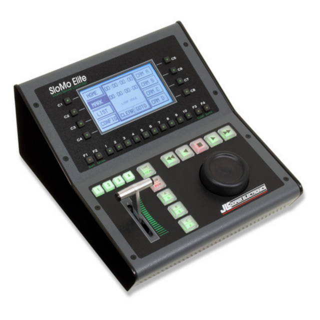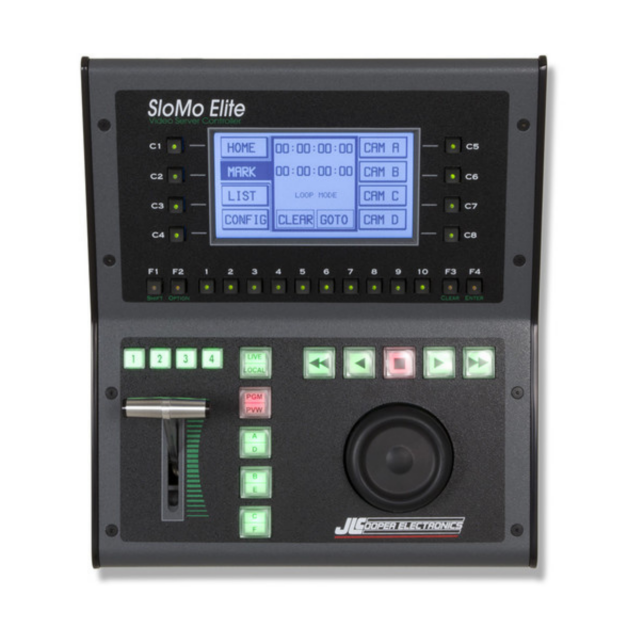 A JLCooper SloMo Elite-C vezérlője egy Ethernet és USB 2.0 interfésszel rendelkező videoszerver-vezérlő. Ez a kompakt változat 33%-kal kisebb, mint a SloMo Elite vezérlőfelület, és a szoftver- és OEM-fejlesztők számára készült. A SloMo Elite-C vezérlőt olyan lassított mozgású alkalmazásokhoz tervezték, mint a sport, a közvetítés, az eredményjelző és az azonnali visszajátszás. 10 bites Hall-effektes T-Barral, görgetőkerékkel és 4,5 x 2,5" méretű, háttérvilágítással ellátott grafikus kijelzővel rendelkezik. Egyidejűleg akár négy videoszerver vagy meghajtó is vezérelhető.