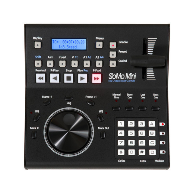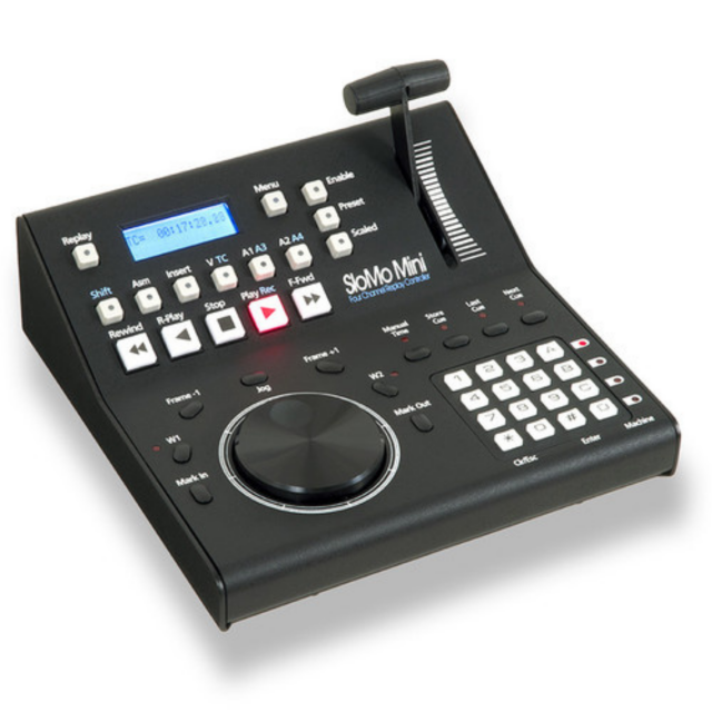 A hírek, sport, eredményjelző és egyéb lassított felvételek szerkesztésére tervezett JLCooper SloMo Mini egy olyan azonnali visszajátszás vezérlő, amely RS-422 kapcsolaton keresztül egyszerre akár négy VTR-dekkkel is képes összekapcsolódni. A programozható kocogókerék vagy a numerikus billentyűzet segítségével konkrét felvételek cuedálhatók, majd a T-bar segítségével valós időben manipulálhatók. A mellékelt 4 irányú megszakító/tápkábel segítségével a SloMo Mini kompatibilis számos szabványos VTR deckkel és szerverrel, amelyek támogatják az RS-422 vezérlési protokollt, beleértve az AJA KiPro-t, a Blackmagic Design HyperDeck Studio-t és a VideoDevices PIX 250i, 260i és 270i készülékeket. A külön megvásárolható Gangway 16 és Gangway 32 dobozokkal történő további bővítéssel sokkal több deck egyidejű vezérlése lehetséges, mint a standard mellékelt kábellel.