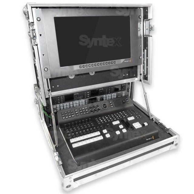 Speciális gyártási tok az ATEM Television Studio Pro (HD vagy 4K) számára, amely lehetővé teszi a rendező, a monitor és két 19"-os, 1U méretű eszköz szállítását bedugott állapotban.