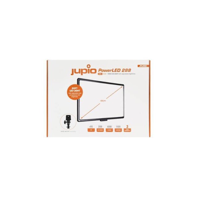 A Jupio PowerLED 288A egy nagyméretű LED-lámpa, amely a fotózás vagy videózás során a segítségére lehet. Rendkívüli, 42 cm-es átlós méretével büszkélkedhet, ami azt jelenti, hogy erős fényforrást biztosít, és bármilyen fényviszonyok között képes megvilágítani a jelenetet. A nagyméretű lámpa 288 LED-izzóból áll, amelyek segítségével könnyedén beállíthatja mind a fehér színhőmérsékletet, mind a fényerőt. Általában a meleg fehér fény segít a relaxáció érzetének megteremtésében, míg a hideg tónus elősegíti a munka koncentrációját. Mindkét érték aktuális beállításait egy áttekinthető LCD-kijelzőn keresztül tekintheti meg.