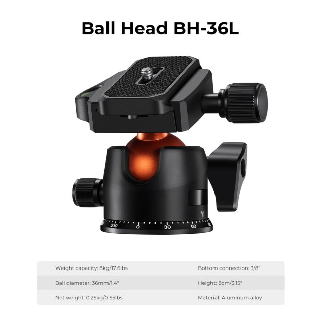 - * 【360 fokos fém gömbfej】36 mm-es fém gömbfej bármilyen szögbe elforgatható, segítve a kamera tevékenységének javítását pásztázás közben. 360 fokos pásztázó tárcsa segítségével precíz felvételeket állíthat be a tájak szépségének megörökítéséhez.