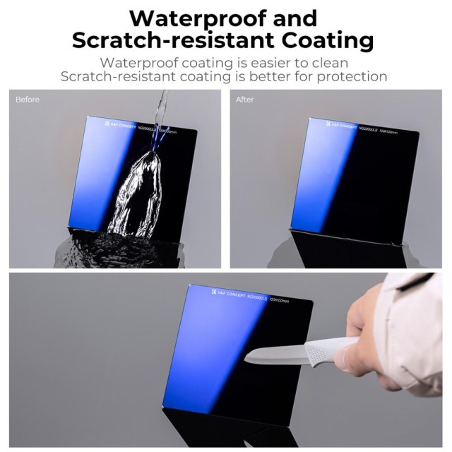 A K&F Concept 100×100×2 mm-es Nano-X ND2000 négyzet alakú szűrő 11 fokozatú fénycsökkentést biztosít extrém hosszú expozíciós idővel történő fényképezéshez, lehetővé téve a gyönyörűen sima víz, a drámai felhőmozgás és az ultra-fényes nappali fény szabályozását. AGC optikai üvegből készült, kétoldalas, 28 rétegű nano bevonattal, csökkenti a tükröződéseket, javítja a tisztaságot, és tartós védelmet nyújt a víz, olaj, karcolások és penész ellen, biztosítva a kiváló képminőséget bármilyen környezetben.