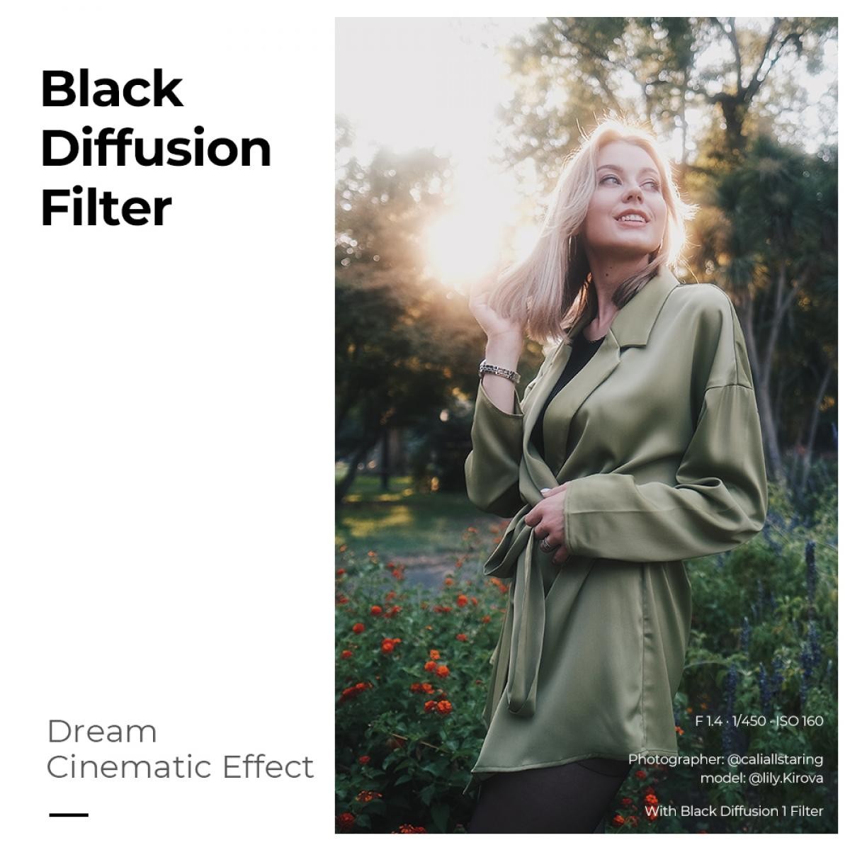 A K&F Concept 100×100×2 mm-es Black Mist 1/1 négyzet alakú szűrő olyan filmesek és fotósok számára készült, akik álomszerű, hangulatos vizuális stílust keresnek. Erős diffúziós hatása lágyítja a ráncokat, szeplőket, pórusokat és éles részleteket, így a bőr szebbnek tűnik, míg a kiemelt részek filmre jellemző megjelenést kölcsönöznek. A portrékhoz, a történetmesélő vizuális elemekhez és a kreatív videó jelenetekhez tökéletesen alkalmas Black Mist 1/1 szűrő javítja a hangulatot anélkül, hogy rontaná a kép élességét.