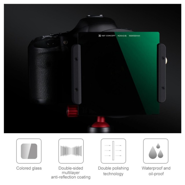A K&F Concept 100×100×2 mm-es Full ND64 négyzet alakú szűrő 6 fokozatú fénycsökkentést biztosít a sima hosszú expozíciók, a gazdag színpontosság és a kiegyensúlyozott nappali fényben történő fényképezés érdekében. Prémium japán optikai üvegből készült, 20 rétegű, többszörös ellenálló bevonattal, minimalizálja a tükröződéseket, a szellemképeket és a visszaverődéseket, miközben tartós védelmet nyújt a karcolások, a víz, az olaj és a por ellen. A professzionális felhasználók számára tervezett ND64 szűrő valódi semleges színvisszaadást biztosít, IR-szennyeződés nélkül, és illeszkedik a szabványos 100 mm-es négyzet alakú szűrőtartókhoz, beleértve a Cokin Z sorozatot is.