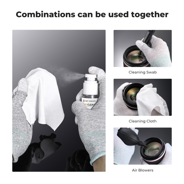 K&F Concept spray és mikroszálas objektív tisztító készlet, nem gyúlékony fényképezőgép objektív tisztító és digitális érzékelő tisztító oldat, bevonatos objektívekhez, távcsövekhez, távcsövekhez, fényképezőgépekhez és szemüvegekhez