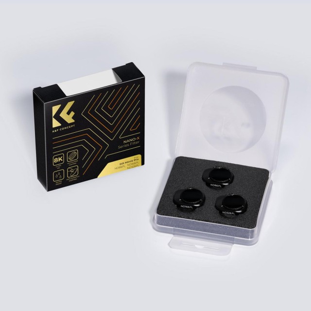 DJI Mini 4 Pro hibrid ND&PL szűrő készlet. A K&F Concept legújabb hibrid ND&PL szűrője kifejezetten a DJI Mini 4 Pro számára készült, egy szűrő rendelkezik ND és CPL szűrő funkciókkal, nemcsak az objektívbe bejutó fény mennyiségét tudja szabályozni az égbolt sötétítése érdekében, hanem a nem fémből, például vízből, üvegből stb. származó nemkívánatos tükröződések elkerülésére is alkalmas, és hozzájárul a kontraszt és a telítettség növeléséhez a kék égbolton és a fehér felhőkön.