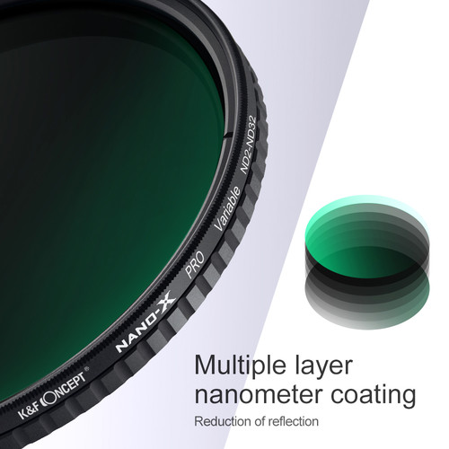 Készítsen kreatív felvételeket a K&F Concept Nano-X ND2-ND32 változó ND szűrővel. Ez a 43 mm-es szűrő 1-5 fokozatig állítható fénycsökkentést kínál a lenyűgöző hatások érdekében. Japán optikai üvegből készült, zöld többrétegű bevonattal, így megőrzi a színpontosságot. Emellett vízálló és karcálló bevonata biztosítja a tartósságot. Tökéletes a dinamikus fényképezéshez és videózáshoz.