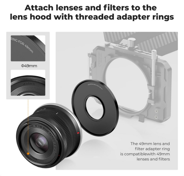 A K&F 49MM Matte Box adaptergyűrű egy tartós, könnyű megoldás professzionális filmesek és fotósok számára, amelyet úgy terveztek, hogy könnyedén csatlakoztassa objektívjét a K&F Concept matte boxokhoz. A repülőgép-ipari minőségű alumíniumötvözetből készült adapter kivételes stabilitást és kopásállóságot biztosít, valamint ellenáll a környezeti körülményeknek.