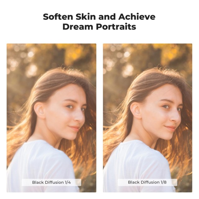 A K&F Concept Black Diffusion Mist szűrő lágyítja a fényvisszaverődéseket, csökkenti a kontrasztot és filmszerű hatást kölcsönöz a videóknak és fényképeknek.