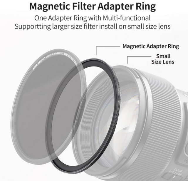 A K&F 58-82mm mágneses szűrőadapter gyűrű lehetővé teszi a nagyobb, 82mm-es szűrők használatát kisebb, 58mm-es menetes objektívekkel. A repülőgép-ipari minőségű alumíniumötvözetből készült adaptergyűrű nagy szilárdságot és ütésállóságot biztosít. Fekete eloxált felületkezelése segít megelőzni a tükröződéseket felvétel közben. Az adapter stabil tapadással rendelkezik a gyors felszerelés és eltávolítás érdekében, és kifejezetten a K&F Concept mágneses objektívszűrőkkel való használatra tervezték. Felhívjuk figyelmét, hogy ez az adaptergyűrű csak 82 mm-es mágneses szűrőkkel kompatibilis, és nem támogatja a nem mágneses objektívszűrőket.