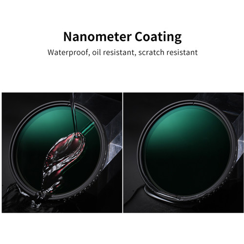 Az ND8-ND2000 Nano-X változó ND szűrő a KF Concept-től egy 58 mm-es szűrő, amely 3 és 11 fokozat között állítható fénycsökkentést tesz lehetővé. Egyenletesen sötétíti a teljes képkockát, lehetővé téve a szokásosnál hosszabb záridők vagy nagyobb rekesznyílások elérését. Ez különösen hasznos a mozgási elmosódási effektusok létrehozásához és a mélységélesség szabályozásához, így tökéletes tájképek és erős fényviszonyok mellett történő felvételek készítéséhez. Japán AGC optikai üvegből készült, így magas képminőséget biztosít. Többszörösen ellenálló, vízálló bevonata taszítja a port, a szennyeződéseket, és könnyen tisztítható. A 24 rétegű többrétegű bevonattal és a karcsú, 7,5 mm-es, repülőgép-minőségű alumíniumötvözetből készült szűrőgyűrűvel ez a szűrő kivételes teljesítményt nyújt.