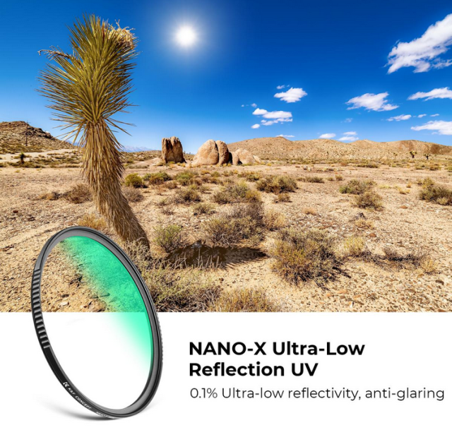 A K&F 58MM Nano-X Ultra-Low Reflection UV szűrő kivételes tisztaságot és védelmet nyújt lencséjének. Fejlett bevonatainak és kiváló minőségű optikai üvegének köszönhetően javítja a képminőséget, és csökkenti a nem kívánt tükröződéseket és tükröződéseket.